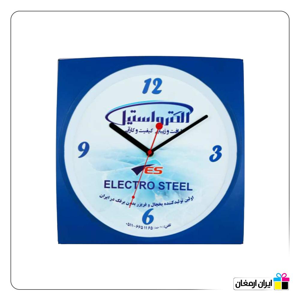 این ساعت دیواری ها از مواد اولیه متفاوتی تشکیل شده اند و ابعاد مختلفی نیز دارند. یک ساعت دیواری تبلیغاتی ممکن است فلزی، پلاستیکی یا چوبی باشد. مزیت ساعت دیواری های پلاستیکی نسبت به سایر ساعت دیواری ها، قیمت ارزان‌تر آن‌ها و همچنین تنوع طرح و رنگ بیشتر در آن است.